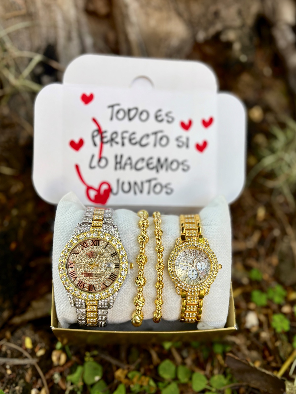 Combo Diamantes Bicolor Blanco + Dorado + Pulseras Rodianas