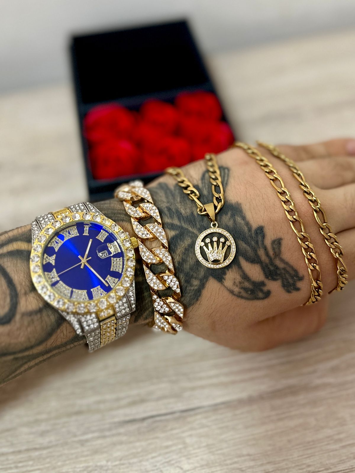 Combo Diamond Bicolor Azul + Pulsera + Cadena