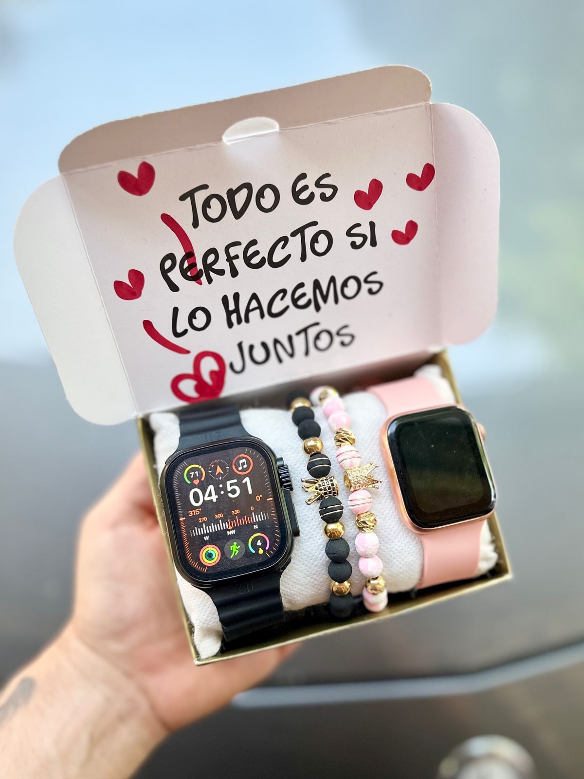 Combo Doble SmartWatch Ultra Negro y S8 Rosado y Pulseras