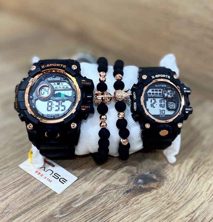 Combo Triple Diamantado bicolor Verde y Dorado con Pulseras Reyes