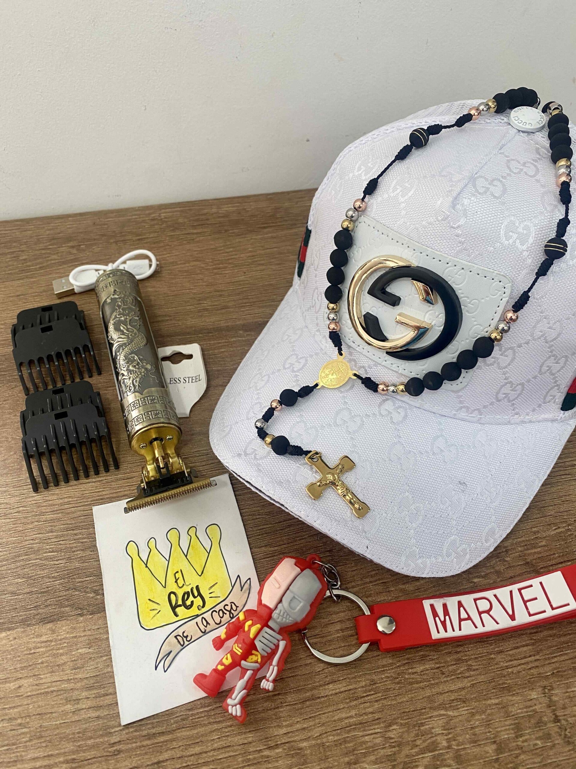 Combo Gorra Blanca Barbera Rosario Tricolor Llavero
