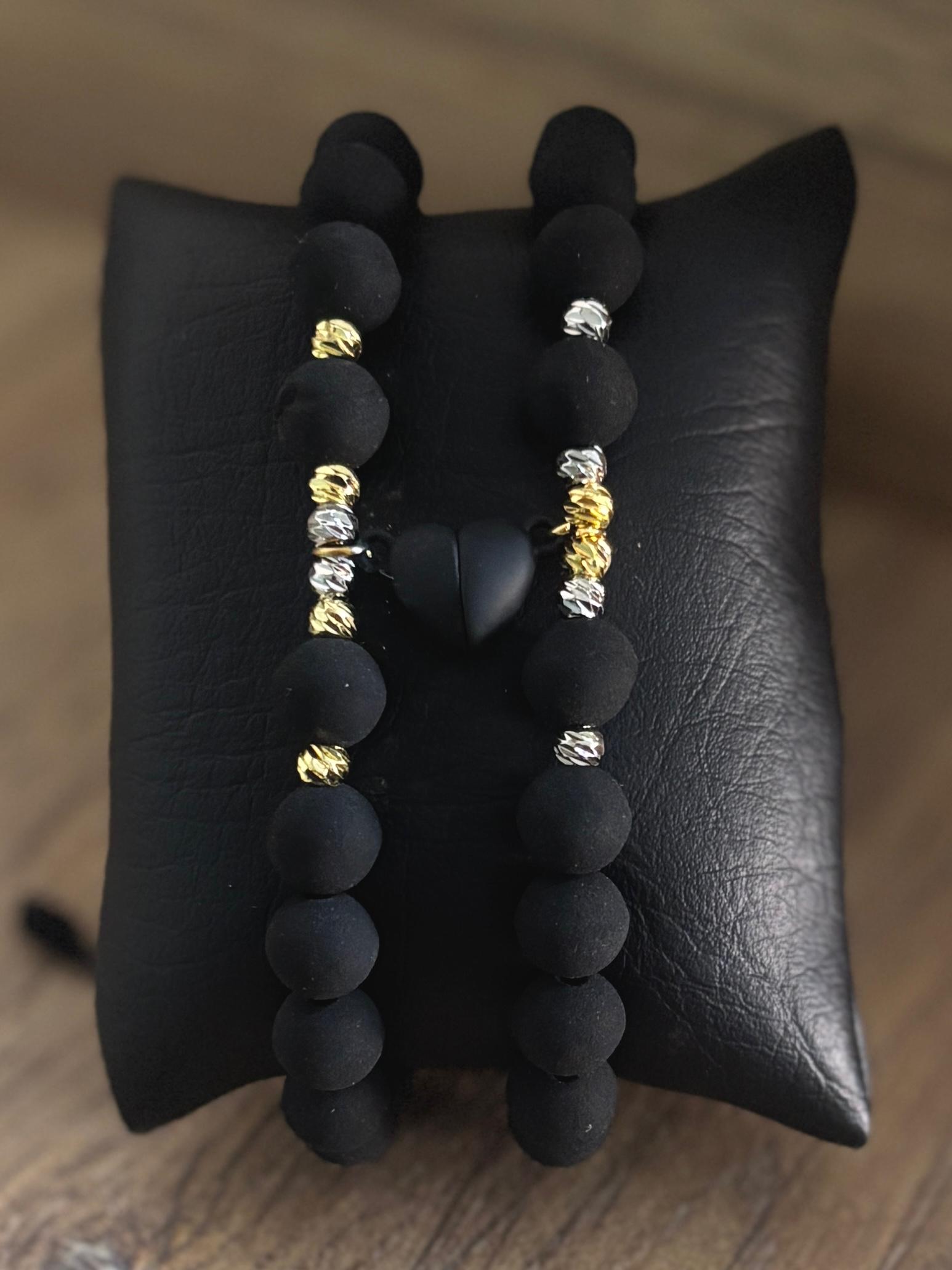 MDE Pareja de Pulseras – Corazones Iman Negro