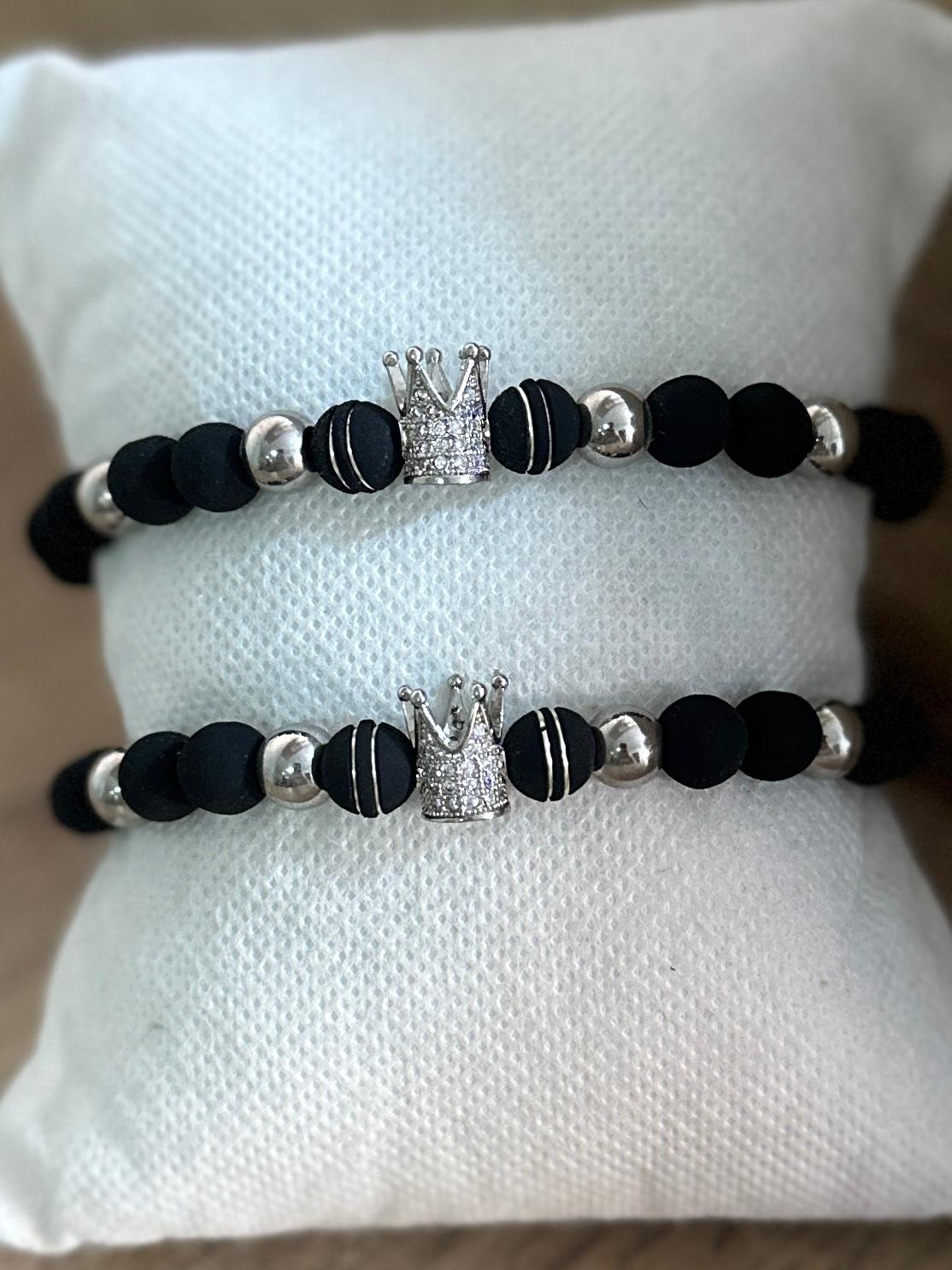 MDE Pareja de Pulseras – Coronas Tradicionales Plateadas