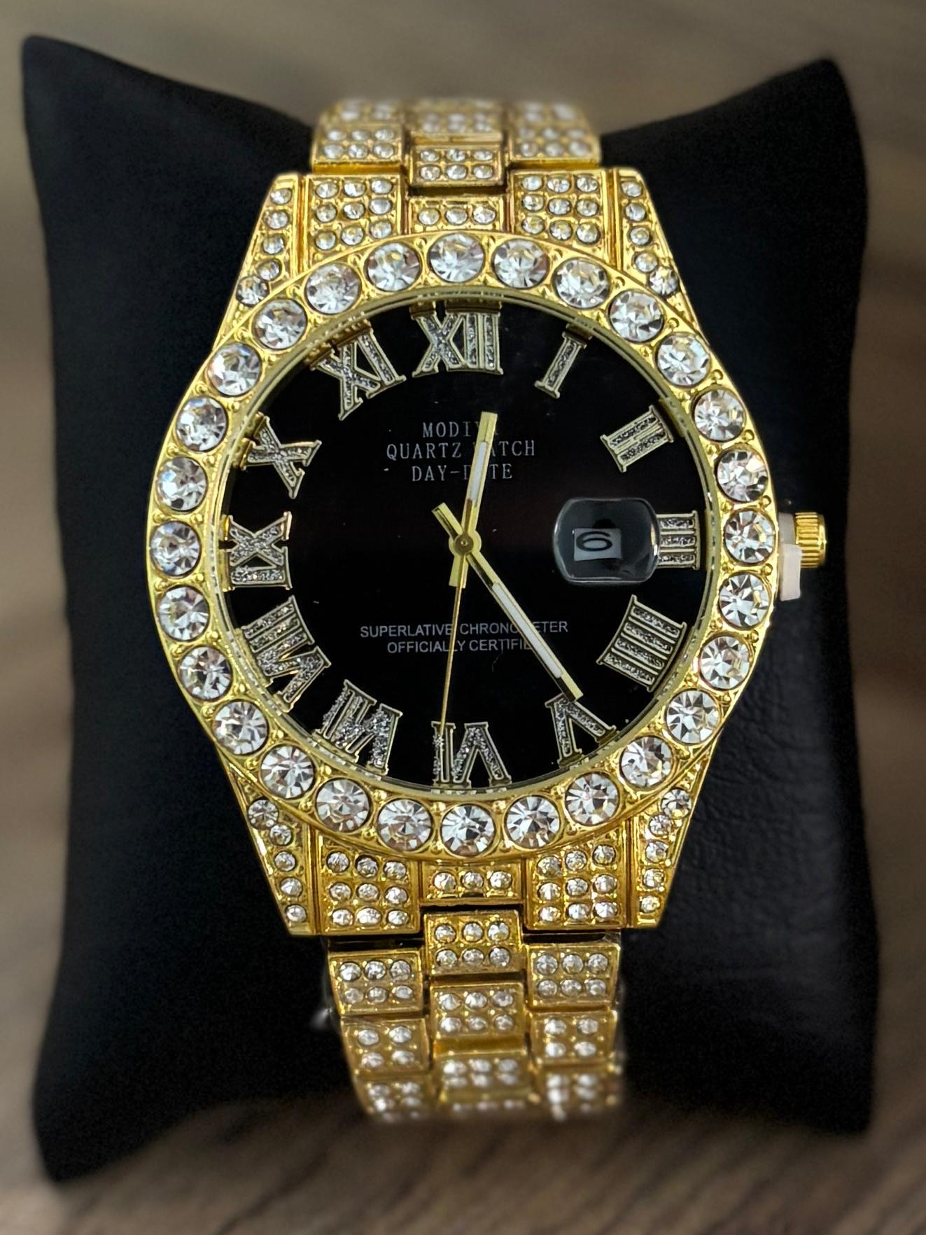 MDE Reloj Caballero – Diamantado Dorado fondo negro