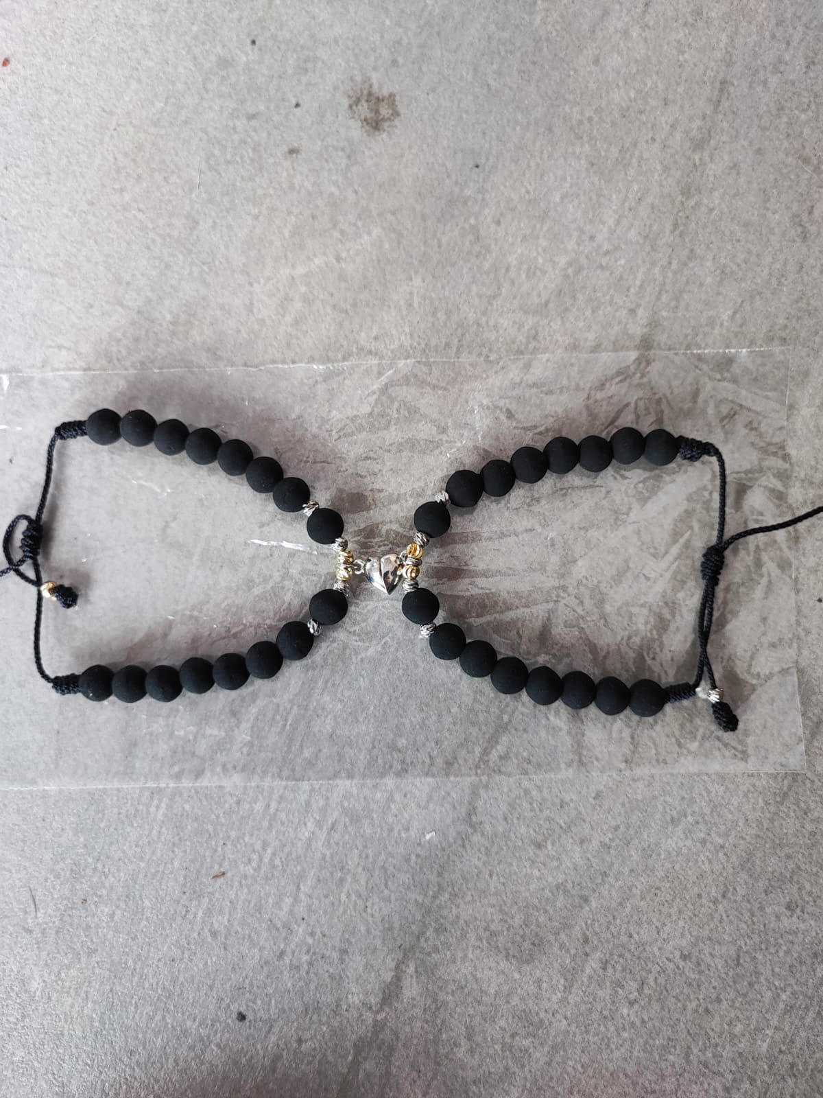 BQUILLA Pareja de Pulseras – Corazones Iman Plateado