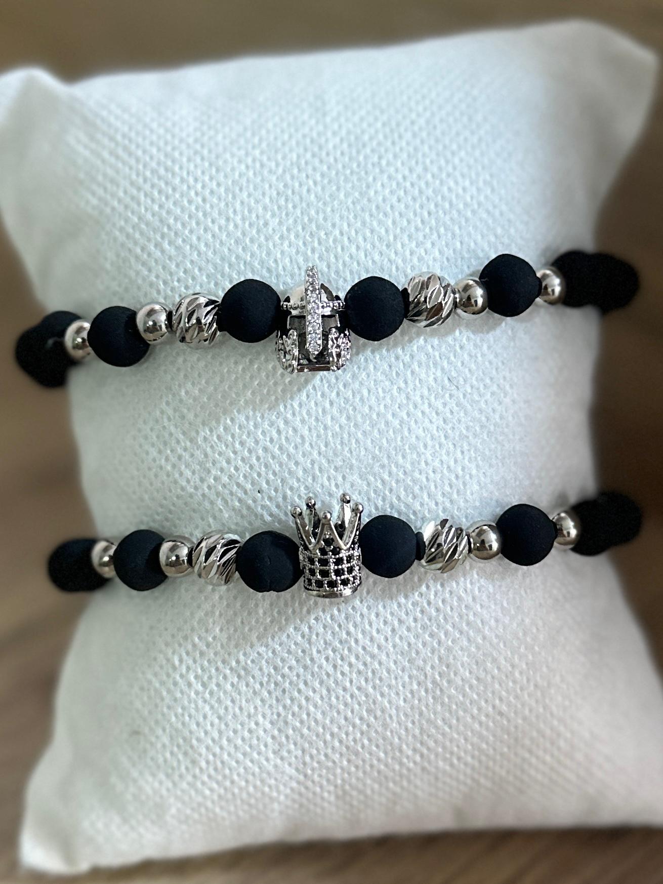 BQUILLA Pareja de Pulseras – Gladiador + Corona Plateado
