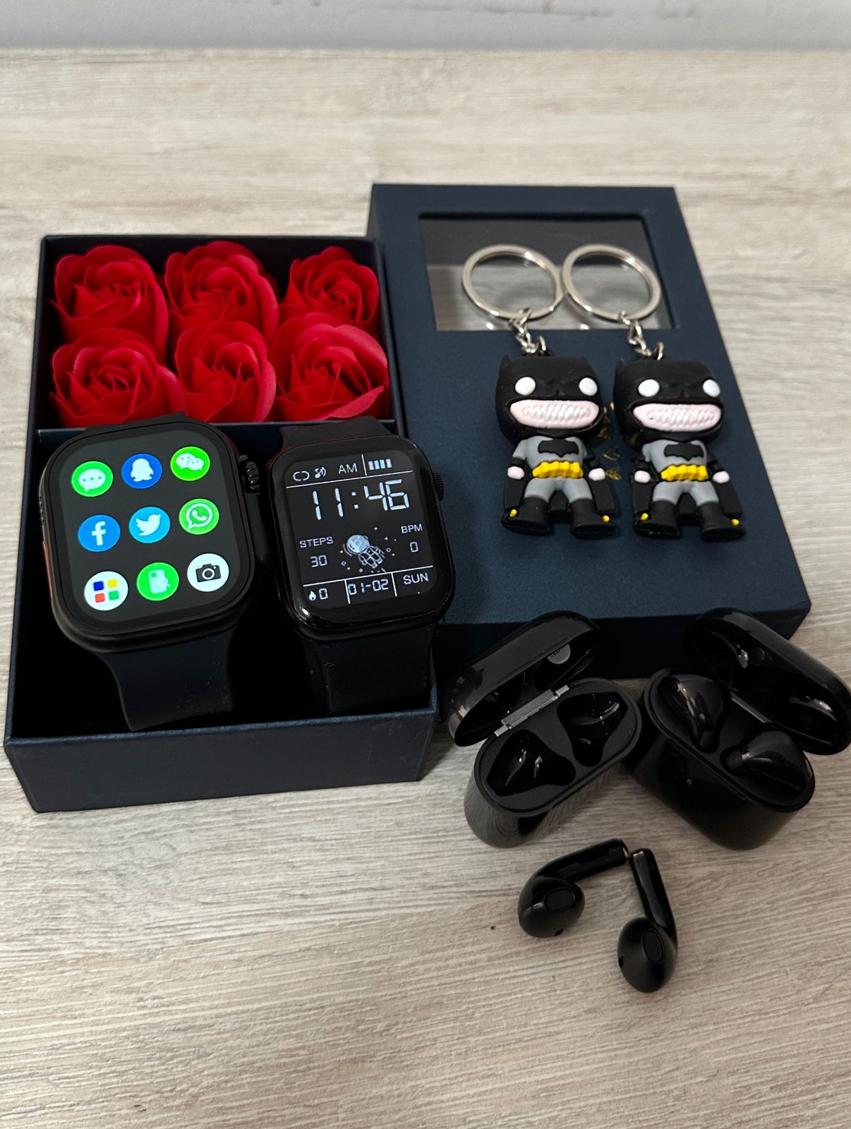 Pareja S8 Negros + Pareja Audífonos Negros + Pareja de Llaveros